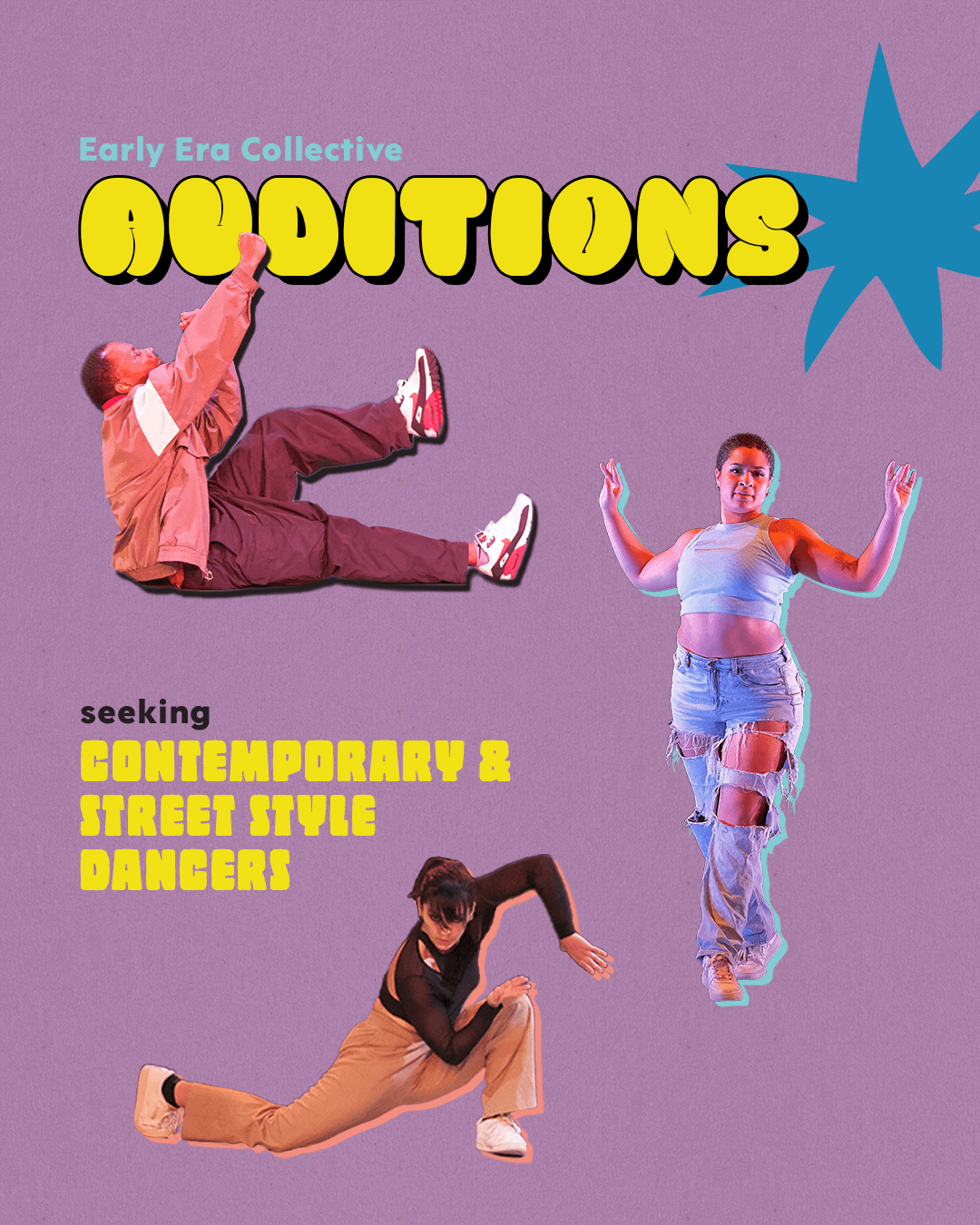 Early Era Collective’s mission is to present multiform art featuring diverse perspectives for diverse audiences. We believe that professional creative work is strongest when collaboratively made by individuals with a variety of training, artistic processes, expertise, lived experience, and world views. Early Era is a nonprofit dance company comprised of dancers from contemporary, hip-hop, tap, and ballet backgrounds. We also collaborate with filmmakers, spoken word artists, actors, and singers. Many of our productions carry a social justice message folded into their artistry, emphasizing personal stories over politics.